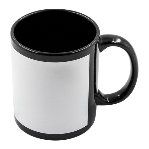 Venta caliente de fábrica Taza de café personalizada Negro 11 oz Sublimación Tazas de cerámica con parche blanco